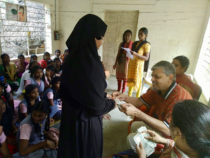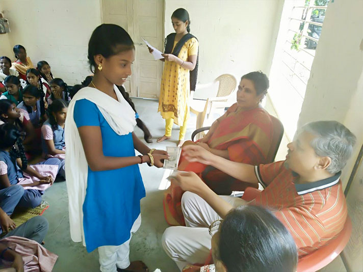 The annual cash scholarship distribution to high school girl children from low income families took place in Panaiyur and Kannagi Nagar near Chennai. The latter place houses one of the largest slum redevelopment colonies in India. Students who obtained more than 90% in their Class X examinations were given an additional prize money.